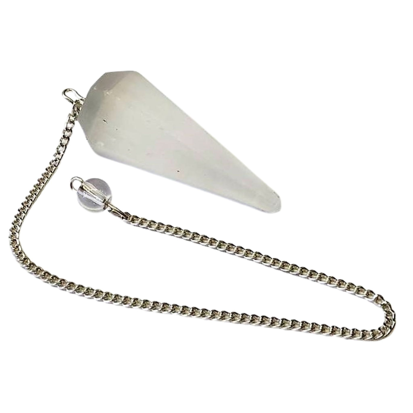 Pendel av facettslipad selenit, ca 40-50 mm hög.