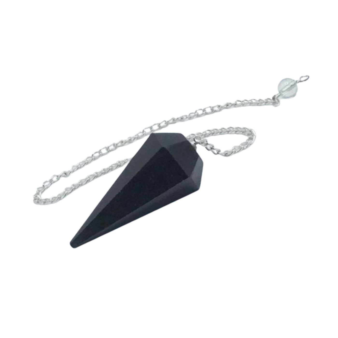 Pendel av facettslipad svart turmalin. Ca 50 mm hög.